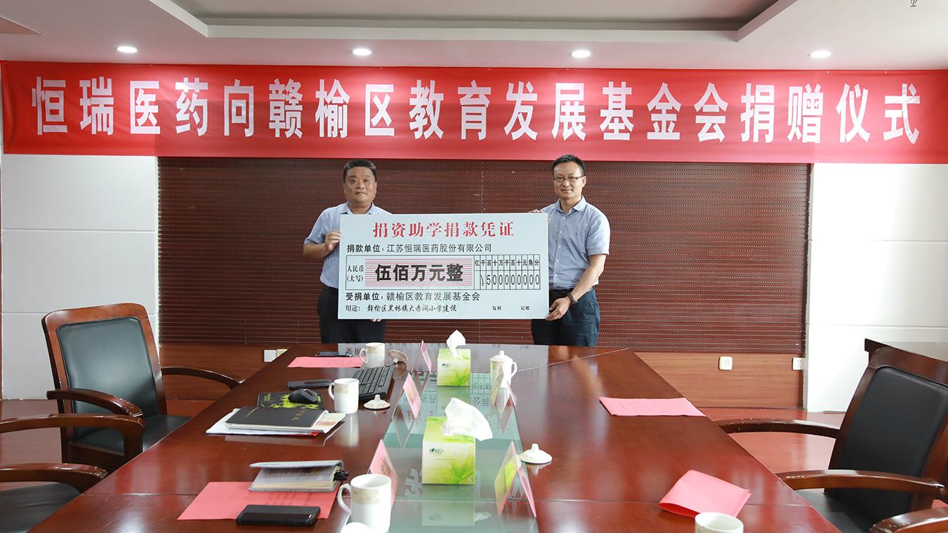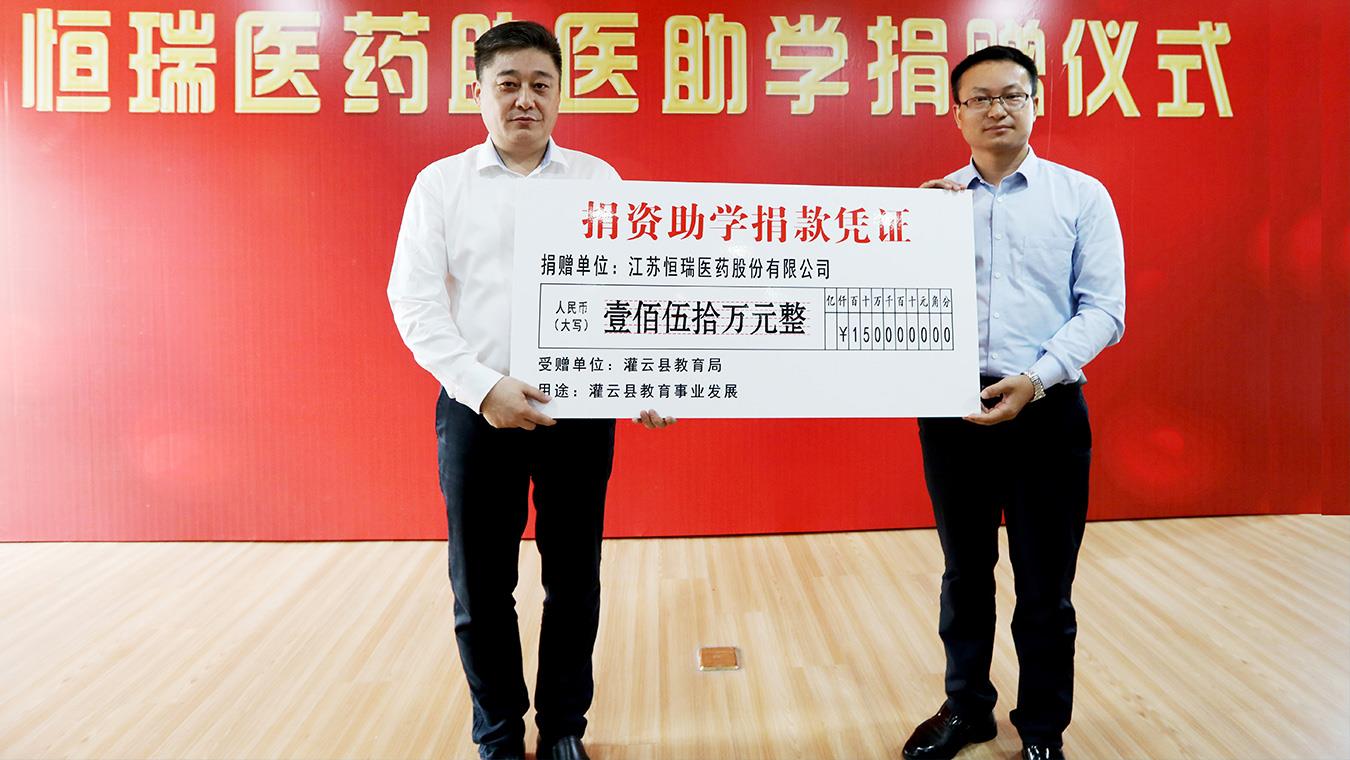 k1体育向连云港市灌云县捐赠助医助学基金300万元。