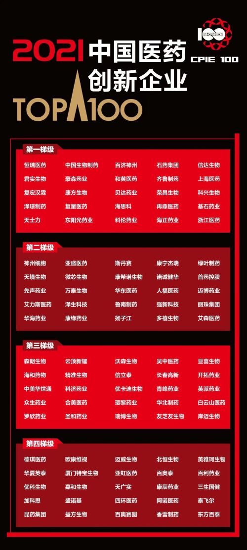 k1体育作为中国创新药行业代表企业,凭借行业领先的综合创新实力,入选 “2021中国医药创新企业100强”榜单,位列第一梯级。