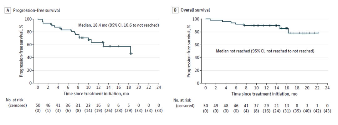 中位PFS为18.4个月(95%CI,10.6-未达到)。