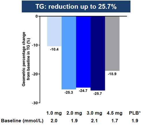 图6. 32周时甘油三酯较基线的变化百分比